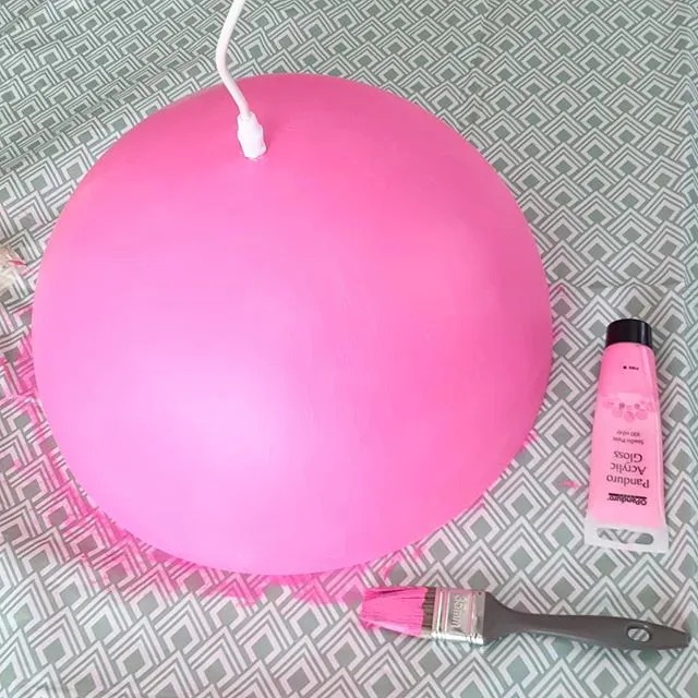 Jag valde att måla lampan med hobbyfärg från Panduro, en härlig neonrosa variant.