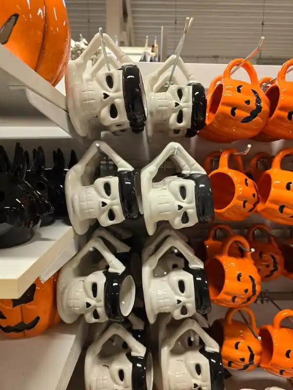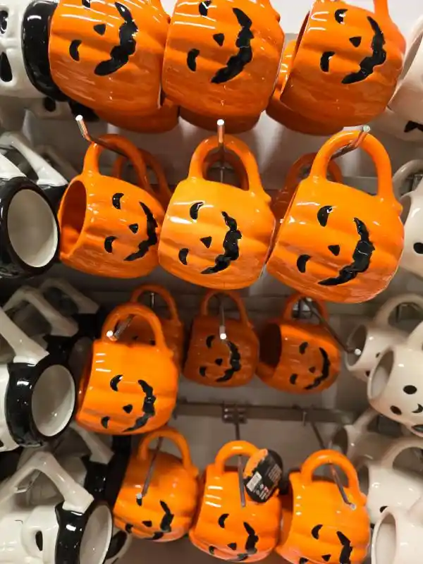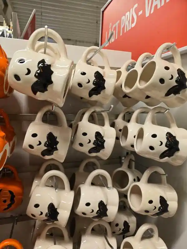 Jag har en svaghet för halloweenmuggar, speciellt de söta varianterna. I år finns söta spökmuggar som håller i en fladdermus, en pumpmugg i orange och en läskigare skelettmugg. Vår familj kör gulligt framför läskigt, åtminstone jag.