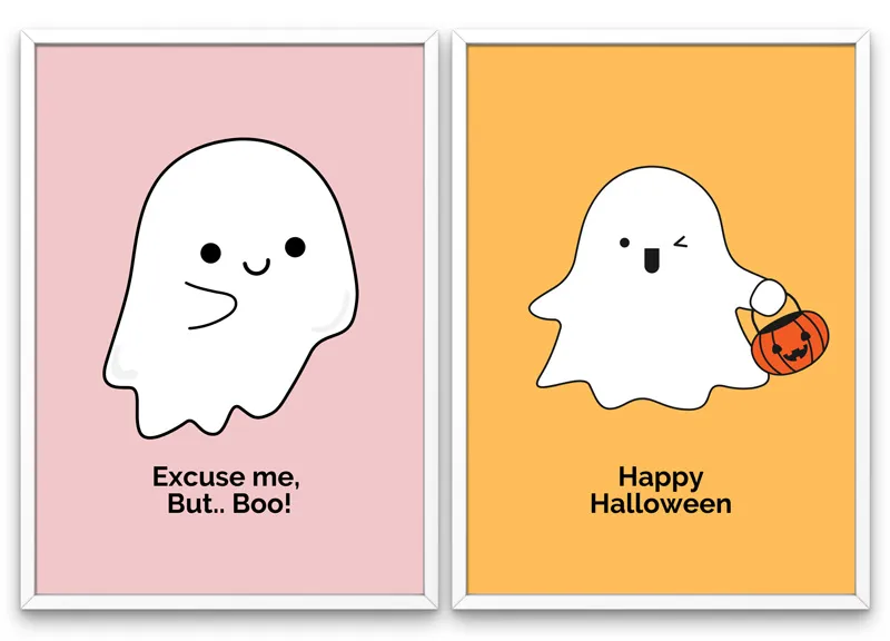 Hörrni, nu bjuder jag på gratis halloweenposters med söta spöken! Perfekt för dig som vill pynta inför Halloween men föredrar gulligt framför läskigt. Ladda ner, skriv ut, sätt i ram. Klart.