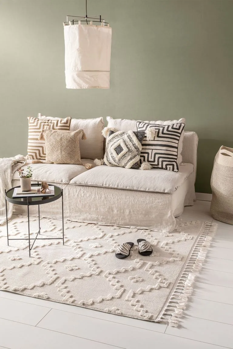 Man kan aldrig gå fel med en cremefärgad matta. Tills det blir rödvinskväll. Nej skämt åsido, i det här huset dricker vi vitt! Jag drog över budget lite, drygt 500 kr. Men vi fantasishoppar ju, så det är lugnt.