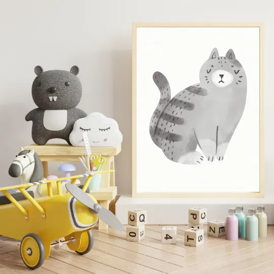En härligt arrogant katt i grått som passar tip top i barnrummet!