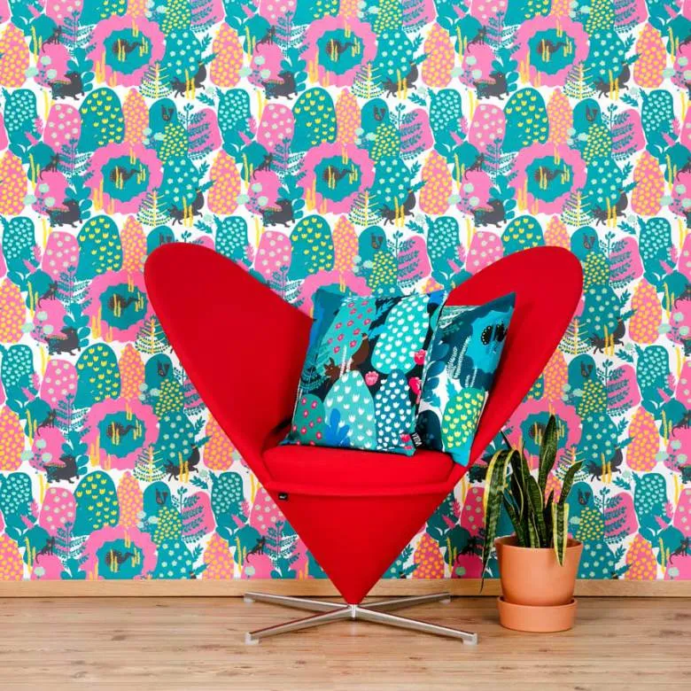 Storfavorit hos mig! Så underbar på alla sätt. Jag är sjukt sugen på att tapetsera med denna i ett barnrum eller en lekstuga. Båda färgsättningarna är fina och tänk så många färger det finns att plocka upp i övrig inredning!