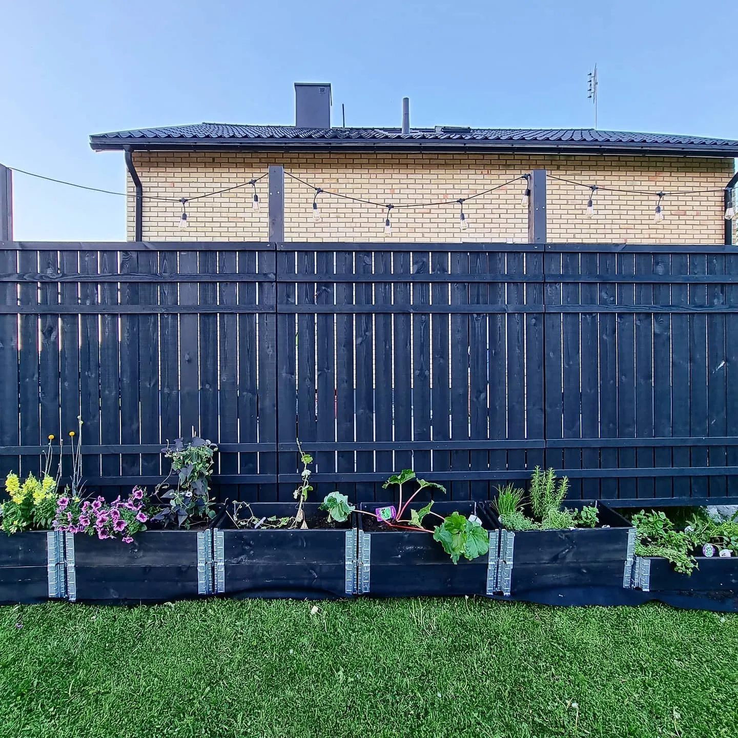 Jag hade bestämt mig för att vår altan skulle ha ett svart härligt plank med känsla av amerikanska och brittiska back yards. En egen plats avskärmad från omvärlden. Jag är så otroligt lycklig med att bilden jag haft i mitt huvud så länge nu äntligen börjar växa fram på riktigt.